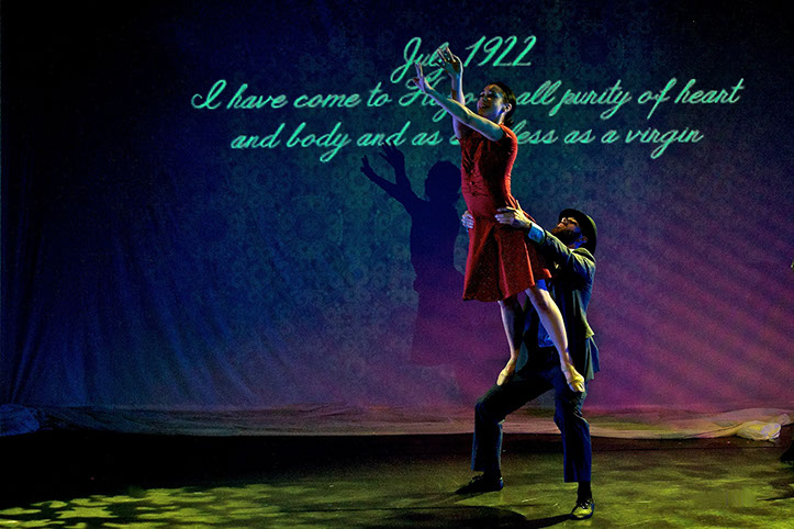Cindy Shapiro’s lyrics and music, with Janet Roston’s intricate choreography and direction, and deeply engaging visual projections by designer Joe LaRue, weave Nin’s story, intertwining excerpts from her diaries and her groundbreaking erotica. The dancers and vocalist unveil the author’s journey of self-discovery which took her from a naïve young housewife into the café society of Paris, where she emerged as an important literary figure during the 1930s, through her life in the United States during and after World War II, to her death and its aftermath in the 1970s. These adventures of self-exploration led the author through numerous simultaneous relationships, bigamy, and grand deceptions which she kept track of using what she called her “Lie Box.” Nin believed in living her life as freely as a man and for that she was chastised after her death. Her legacy is currently being revived, she is revered as a multifaceted, multidimensional woman who created her own heat and became her own sun.
